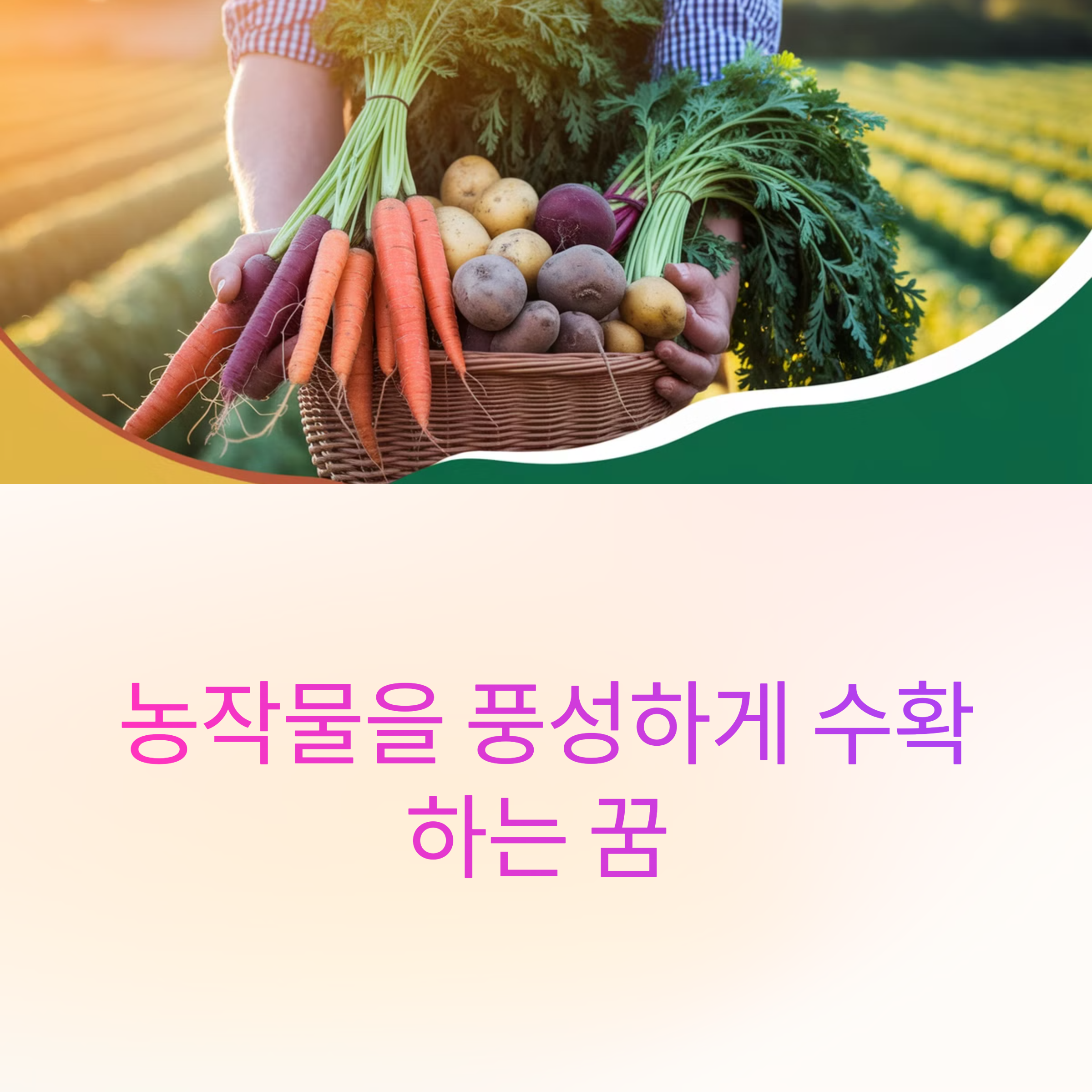 풍성한 농작물 수확은 꾸준한 노력과 인내가 결실을 맺는 모습을 상징합니다. 이는 자신이 지금까지 쌓아온 경험과 노력이 앞으로 큰 보상으로 돌아올 수 있음을 나타냅니다.